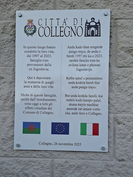 Súčasťou programu bola aj návšteva Collegna – miesta, kde sa pôvodne nachádzala osada, ktorá v súčasnosti už neexistuje. Zostalo tam len pamätné miesto. Pri príležitosti podujatia EURoma Network odhalili na tomto mieste pamätnú tabuľu. Zástupca mesta Collegno umožnil účastníkom viesť dialóg s rómskymi rodičmi, ktorí sú príjemcami iniciatívy presťahovania.