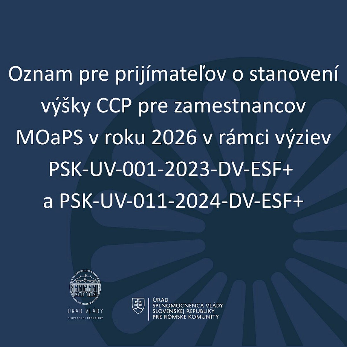 Oznam pre prijímateľov o stanovení výšky CCP pre zamestnancov MOaPS v roku 2026 v rámci výziev PSK-UV-001-2023-DV-ESF+ a PSK-UV-011-2024-DV-ESF+